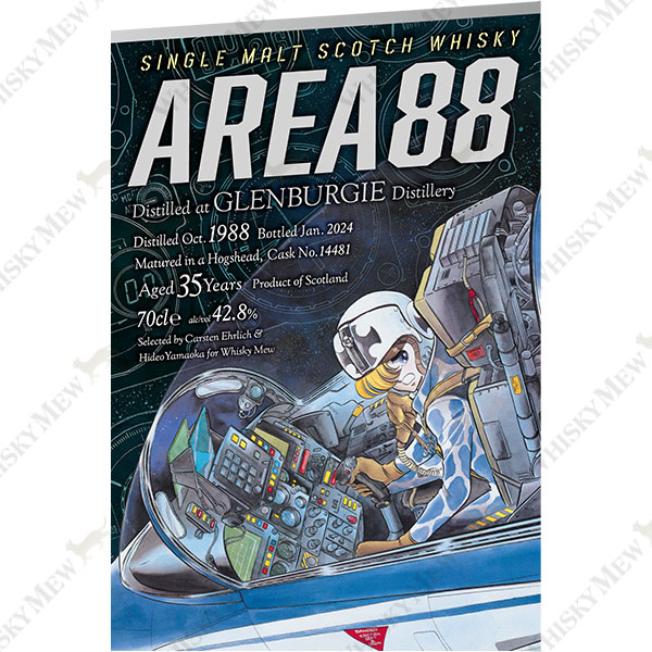 この『エリア88』に相応しいと山岡秀雄が選んだウイスキーは、グレンバーギ1988。『エリア88』にちなんだ88年蒸溜のモルトで、熟成35年という長熟の風格漂うシングルモルトです。陶酔感のあるフルーティーな香り、味わいもクリーンで芳醇なフルーティーさがあふれるバランスよく熟成されたグレンバーギです。